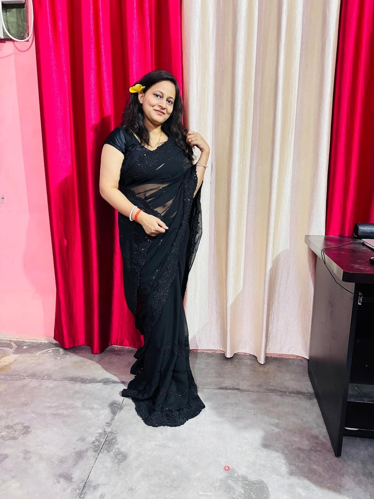 - Color: Saree: Black||Blouse: Black