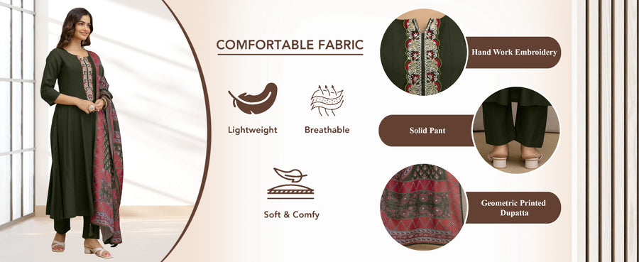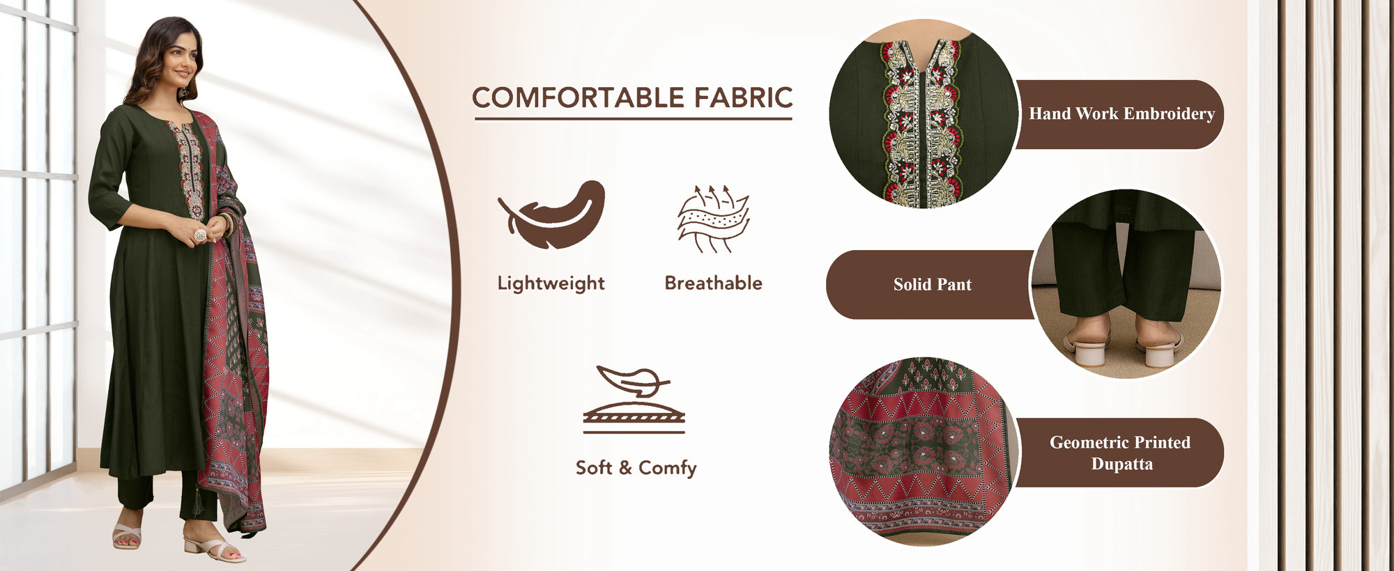 - Stitched Type: Ready to Wear Stitched Salwar Suit Set || Package Contents: 1 Kurta, Pant, Dupatta