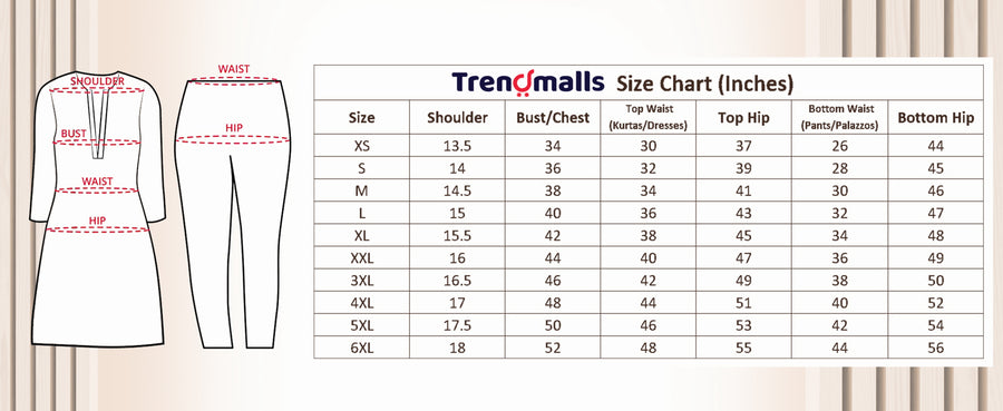 - Length: Kurta: 45 In; Sleeve: 22 In| Salwar: 40 In | Dupatta: 2.30 mt [The model (height 5'8) is wearing a size S]