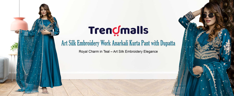 Morpeach Art Silk Embroidery Work Anarkali Kurta Pant with Net Dupatta Set