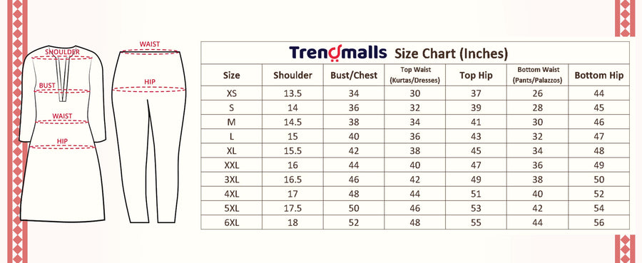 - Length: Kurta: 44 In; Sleeve: 17 In| Salwar: 40 In | Dupatta: 2.20 mt [The model (height 5'8) is wearing a size S]